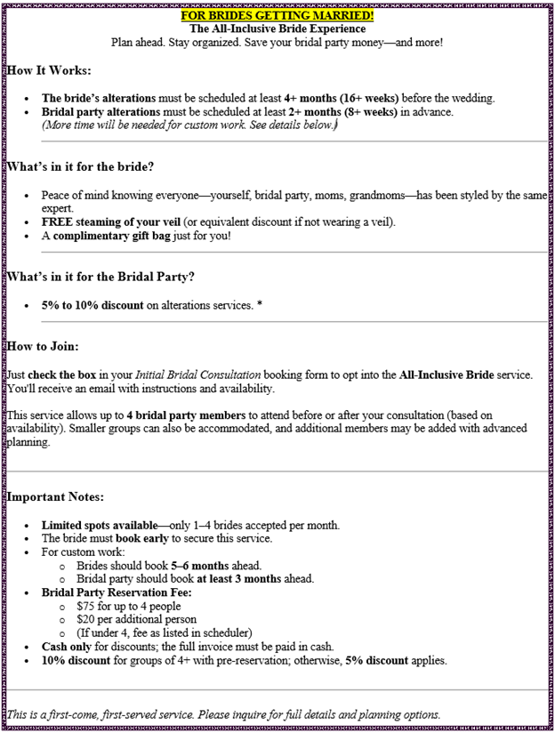 Don't forget to check out the "All Inclusive Bride" below for 2025 Brides and beyond.